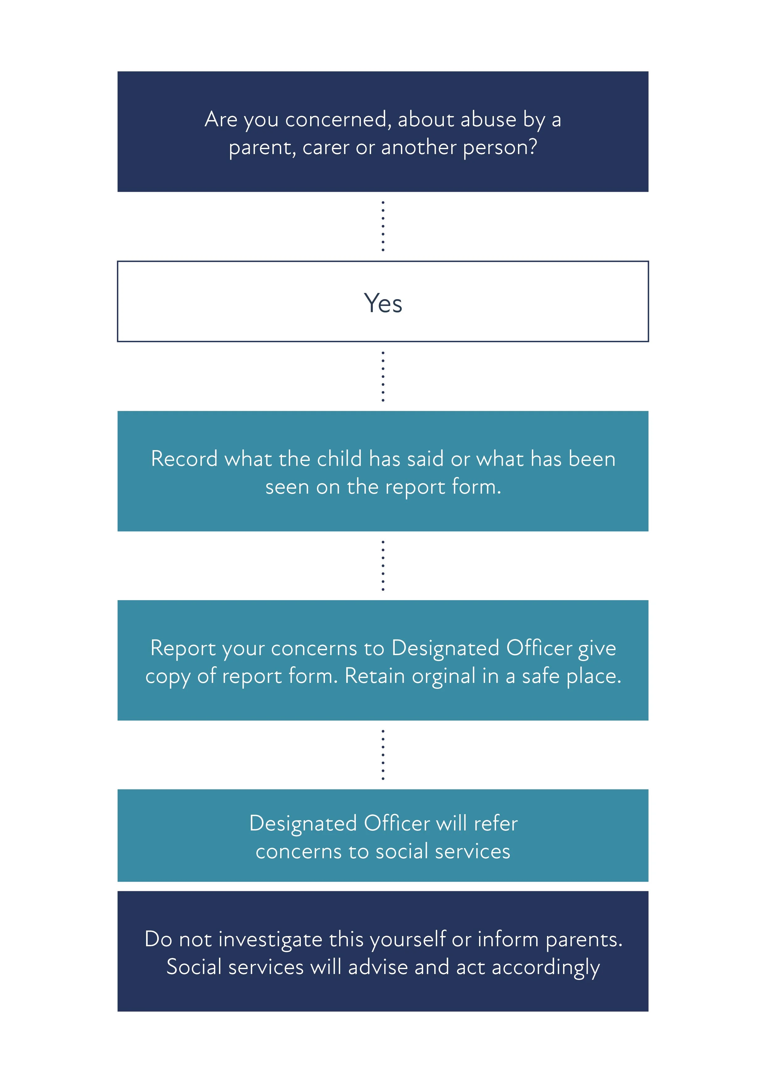 Child abuse is very hard to diagnose, even for professionals, but if anyone has a concern about possible abuse, they should pass that concern on - following the guidelines mentioned later in this document, as sometimes it is the collection of a number of small pieces of information, which may combine to give a picture of abuse.